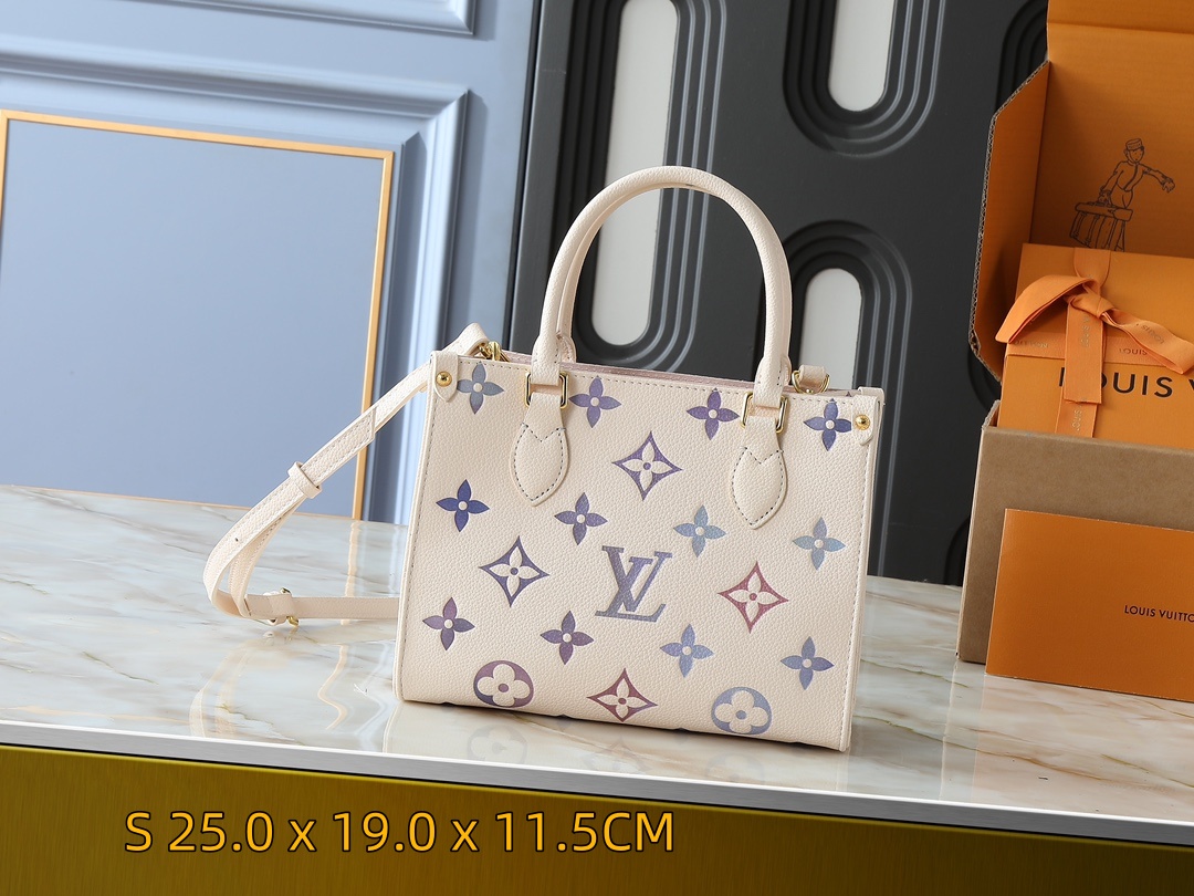 Part of the Dream capsule collection, the OnTheGo PM handbag illuminates any silhouette with its elegant design. The Monogram Empreinte leather is digitally printed with a subtle, watery pastel gradation, creating a dreamy watercolor effect.This stylish bag is accented with dazzling metallic hardware, multiple pockets, and a slender shoulder strap for comfortable cross-body wear.